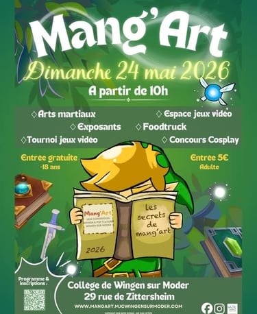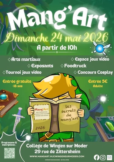 Venez nous retrouver à Wingen sur Moder le 24 mai 2026 à l'occasion de la 4e édition du festival Mang'Art qui aura pour thème "Zelda et mangas fantastiques" !