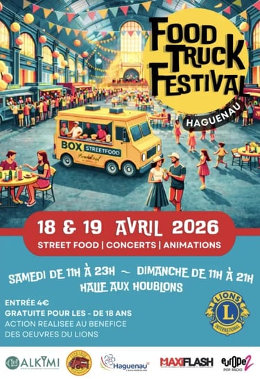 Le weekend du 18 et 19 avril 2026 aura lieu la 6e édition du Food Truck Festival de Haguenau organisé par le Lions Club de Haguenau.